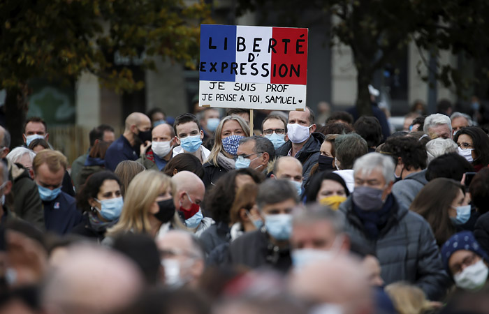 16 октября в среднем учебном заведении в городе Конфлан-Сент-Онорине (департамент Ивелин под Парижем) исламский террорист убил преподавателя истории, географии и обществоведения Самюэля Пати. За несколько дней до гибели он демонстрировал ученикам карикатуры на пророка Мухаммеда в качестве примера свободы выражения, что вызвало негодование местных исламистских кругов.