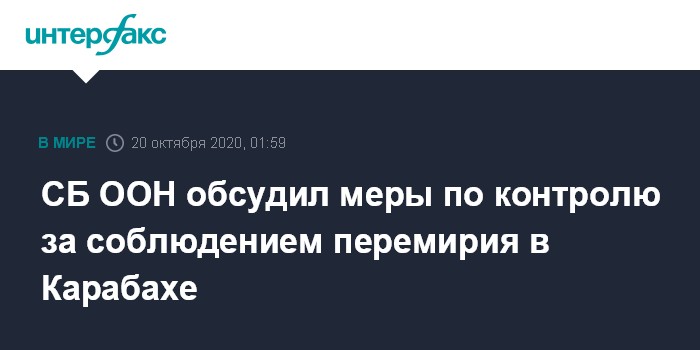 СБ ООН обсудил меры по контролю за соблюдением перемирия в Карабахе