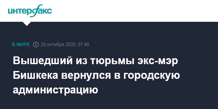 Вышедший из тюрьмы экс-мэр Бишкека вернулся в городскую администрацию