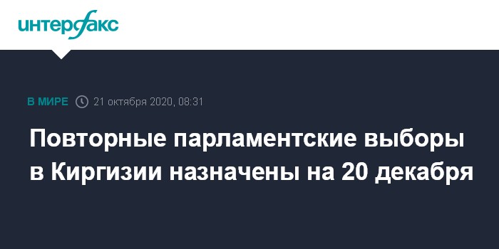 Москва. 21 октября. INTERFAX.RU - Центризбирком Киргизии сообщил, что назначил на 20 декабря повторные выборы в парламент. Подготовка к ним начинается с 21 октября.