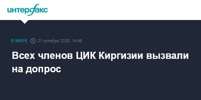 Москва. 21 октября. INTERFAX.RU - Всех членов Центризбиркома Киргизии вызвали на допрос в следственное управление МВД страны в связи с событиями 5-7 октября, сообщил зампредседателя ЦИК Абдыжапар Бекматов.