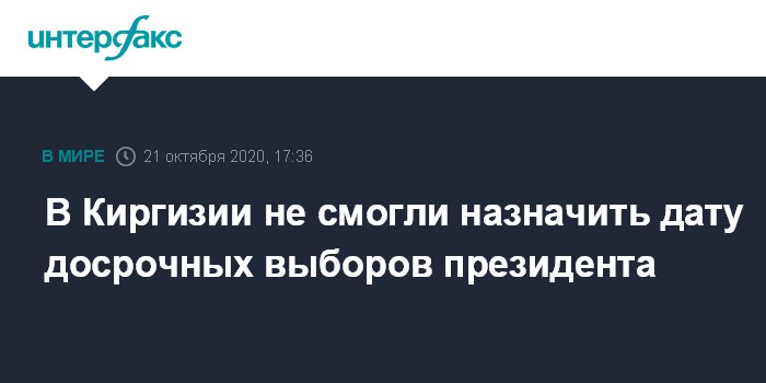 Москва. 21 октября. INTERFAX.RU - Парламент Киргизии не смог назначить дату досрочных выборов президента из-за отсутствия кворума, сообщает в среду корреспондент "Интерфакса" с заседания парламента.