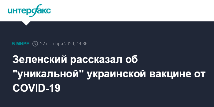 Москва. 22 октября. INTERFAX.RU - Президент Украины Владимир Зеленский анонсировал производство украинской вакцины от коронавирусной инфекции, разработкой которой занимались более полугода.