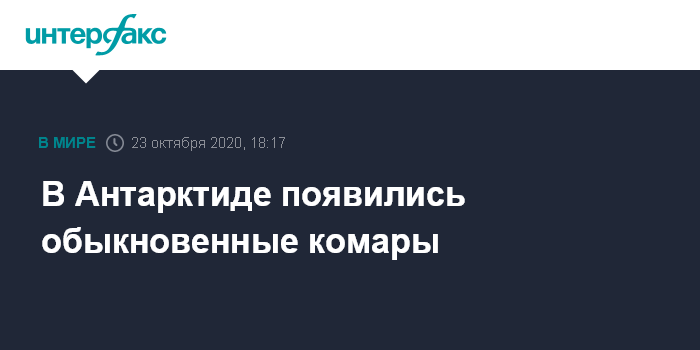 Москва. 23 октября. INTERFAX.RU - Комары появились на популярной у туристов территории Антарктиды - острове Кинг-Джордж, сообщил в интервью "Интерфаксу" начальник Российской антарктической экспедиции Александр Клепиков.