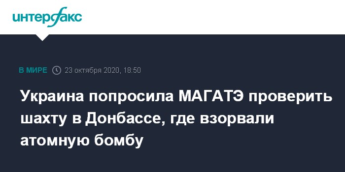 Украина попросила МАГАТЭ проверить шахту в Донбассе, где взорвали атомную бомбу