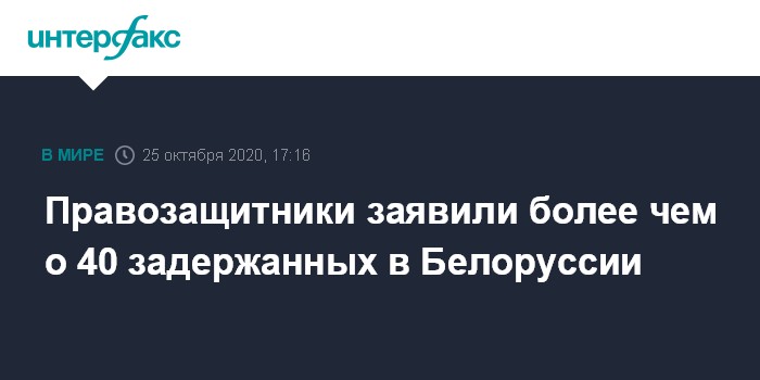 Москва. 25 октября. INTERFAX.RU - Более 40 человек уже задержаны на несанкционированных акциях протеста в Белоруссии в воскресенье, сообщает не зарегистрированный в республике правозащитный центр "Весна".