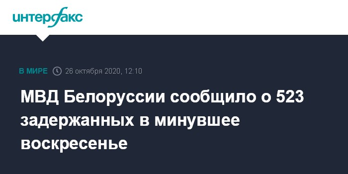 МВД Белоруссии сообщило о 523 задержанных в минувшее воскресенье