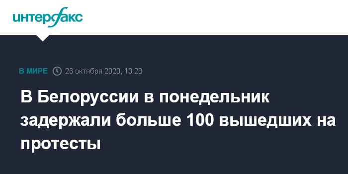 Москва. 26 октября. INTERFAX.RU - Более 100 человек уже задержаны в Белоруссии в понедельник после объявленного оппозицией "народного ультиматума", сообщает незарегистрированный в республике правозащитный центр "Весна". Список задержанных размещен на сайте центра, он обновляется.