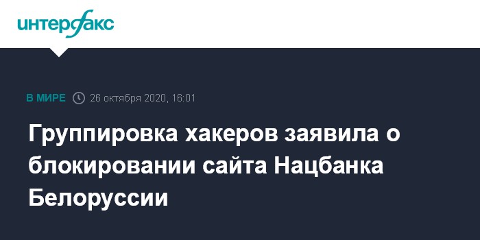 Группировка хакеров заявила о блокировании сайта Нацбанка Белоруссии