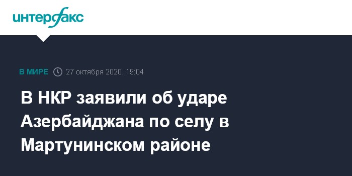 Москва. 27 октября. INTERFAX.RU - ВС Азербайджана днем 27 октября обстреляли кассетными снарядами РСЗО "Смерч" жилые кварталы села Ннги Мартунинского района Карабаха, где укрывалось большое количество мирных жителей, временно перемещенных из ряда других общин, сообщил омбудсмен непризнанной Нагорно-Карабахской республики (НКР) Артак Бегларян.