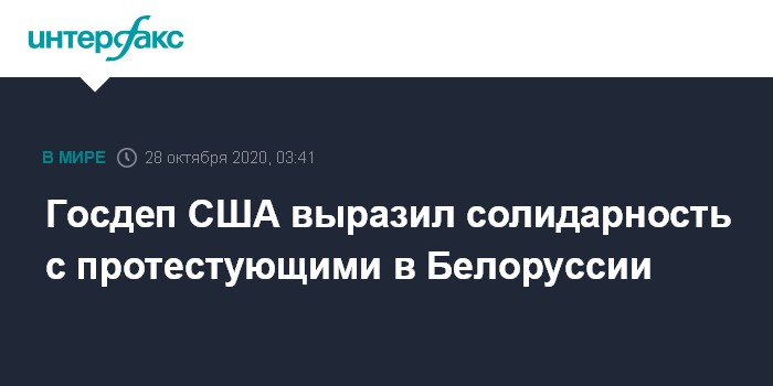 Москва. 28 октября. INTERFAX.RU - Соединенные Штаты продолжат поддержку белорусских граждан, протестующих против действующего президента Белоруссии Александра Лукашенко, сообщила представитель Госдепартамента США Морган Ортагус.