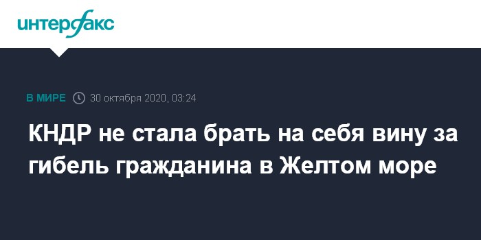 Москва. 30 октября. INTERFAX.RU - Северная Корея заявила, что в смерти южнокорейского чиновника, убитого в территориальных водах КНДР, виноват прежде всего сам Сеул.