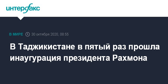 Москва. 30 октября. INTERFAX.RU - Эмомали Рахмон, 11 октября в пятый раз переизбранный президентом Таджикистана, на церемонии в Душанбе в пятницу принес присягу на верность Конституции и народу страны.