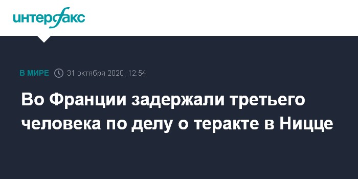 Москва. 31 октября. INTERFAX.RU - Следователи во Франции задержали третьего человека в рамках расследования теракта в церкви Ницце, сообщает в субботу телеканал BFMTV.