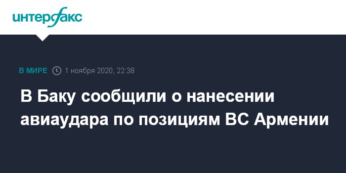 Москва. 1 ноября. INTERFAX.RU - Министерство обороны Азербайджана заявило о нанесении авиаудара по позициям армянских войск.
