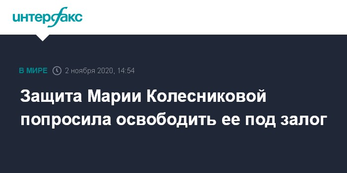 Москва. 2 ноября. INTERFAX.RU - Защита члена президиума Координационного совета белорусской оппозиции Марии Колесниковой направила Следственный комитет ходатайство о ее освобождении из СИЗО под залог, сообщила адвокат Людмила Казак.