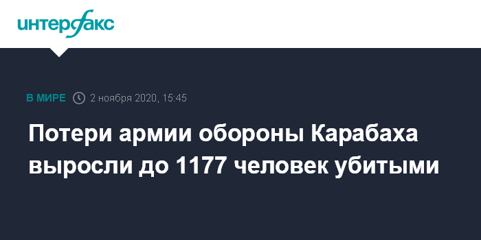 Всего, по уточненным данным Минобороны НКР, с начала боевых действий 27 сентября погибли 1177 военнослужащих армии обороны Карабаха.