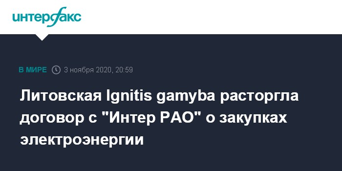 Литовская Ignitis gamyba расторгла договор с "Интер РАО" о закупках электроэнергии