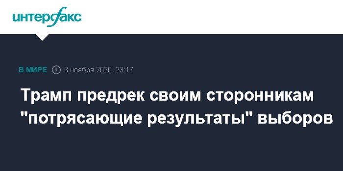 Москва. 3 ноября. INTERFAX.RU - Президент США Дональд Трамп во вторник заявил, что у него хорошо обстоят дела на выборах во всех штатах.