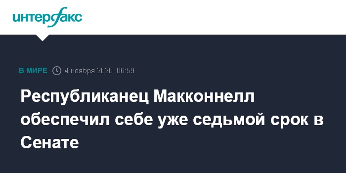 Согласно прогнозам агентства, лидер сенатского большинства республиканец Митч Макконнелл также выиграл свой седьмой срок, победив кандидата от Демократической партии Эми Макграт.