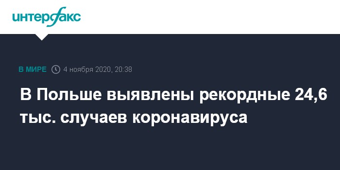 3 ноября в стране было зафиксировано 19 364 случая заражения коронавирусом, 2 ноября - 15 578 случаев. Предыдущий рекорд по количеству выявленных случаев заражения в Польше был зафиксирован 31 октября, когда были подтверждены 21 897 новых инфицированных.