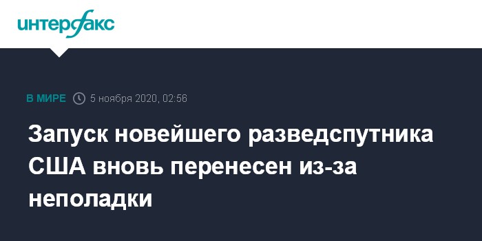 Запуск новейшего разведспутника США вновь перенесен из-за неполадки