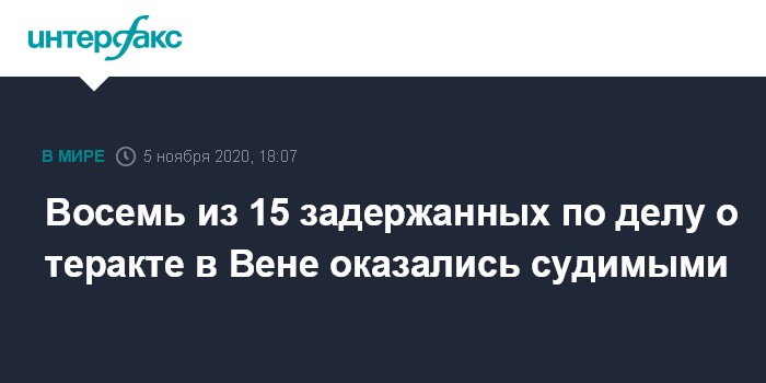 Москва. 5 ноября. INTERFAX.RU - Восемь из 15 задержанных по делу о теракте в Вене имеют судимость, заявил в четверг глава МВД Австрии Карл Нехаммер.