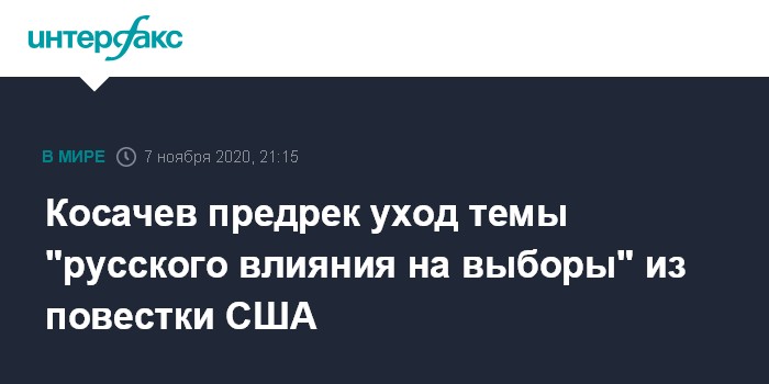 "Один оптимистичный момент: тема русского влияния на выборы президента США, похоже, основательно уйдет из внутриполитического американского контекста", - написал Косачев на своей странице в "Фейсбуке".