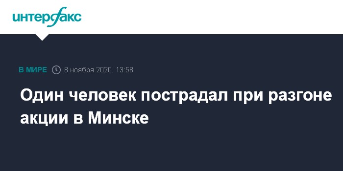 Москва. 8 ноября. INTERFAX.RU - Как минимум один человек пострадал при разгоне колонны протестующих, которые вышли на несанкционированную акцию в центре Минска.