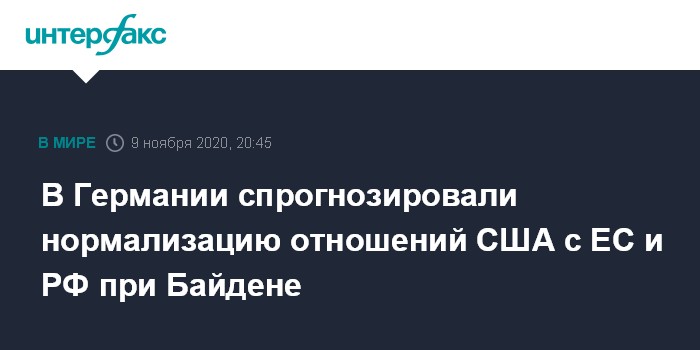 Москва. 9 ноября. INTERFAX.RU - С избранием президентом США Джо Байдена трансатлантические отношения нормализуются, считает профессор Свободного университета Берлина, политолог Нильс Дидерих.