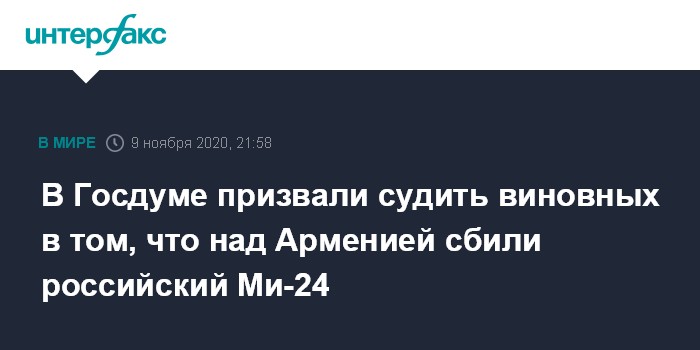 В Госдуме призвали судить виновных в том, что над Арменией сбили российский Ми-24