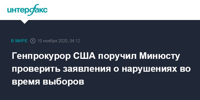 В документе Минюста, который оказался в распоряжении агентства, Барр отмечает, что расследование "может быть проведено, если есть четкие и заслуживающие доверия утверждения о нарушениях, которые, если они верны, потенциально могут повлиять на исход федеральных выборов в отдельном штате".