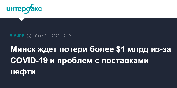 Минск ждет потери более $1 млрд из-за COVID-19 и проблем с поставками нефти