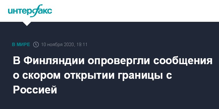 Москва. 10 ноября. INTERFAX.RU - Заявления об открытии границы между Финляндией и Россией до Нового года не соответствуют действительности, сообщила во вторник финская служба новостей Yle со ссылкой на представителя Главного управления пограничной службы страны Туомаса Лаосмаа.