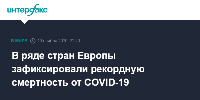 Москва. 10 ноября. INTERFAX.RU - В ряде европейских стран фиксируют рекордные суточные показатели смертности людей с коронавирусом COVID-19, при этом наблюдается небольшое снижение темпов распространения инфекции.