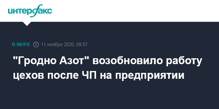 Москва. 11 ноября. INTERFAX.RU - ОАО "Гродно Азот" сообщило, что работа цехов "Аммиак-4" и "Карбамид-4" возобновлена в штатном режиме после неплановой остановки 9 ноября.