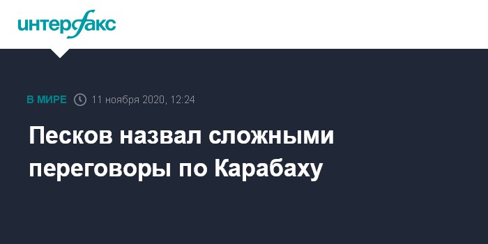 Москва. 11 ноября. INTERFAX.RU - Пресс-секретарь президента РФ Дмитрий Песков не стал отвечать на вопрос о том, какой аргумент смог убедить Азербайджан, выигрывавший боевые действия в Нагорном Карабахе, согласиться на ввод российских миротворцев в регион, отметив только, что переговорный процесс был сложным.