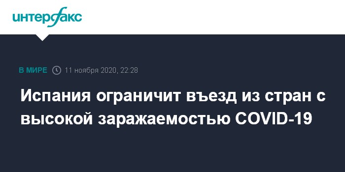 Испания ограничит въезд из стран с высокой заражаемостью COVID-19