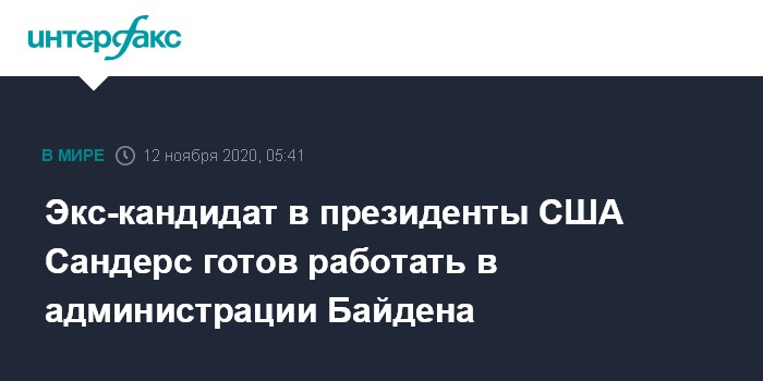 В ответ на вопрос о том, видит ли он себя на посту министра труда, Сандерс ответил: "Правда в том, что я готов делать все возможное для того, чтобы защищать рабочие семьи этой страны, который сейчас испытывают огромное давление. Будет ли это в сенате, или же в администрации Байдена, кто знает? Давайте посмотрим, как все получится".