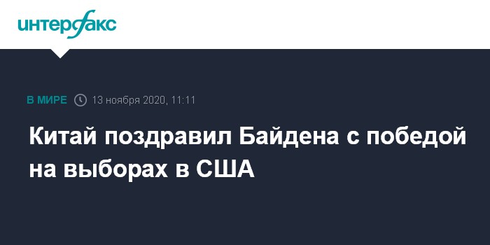 Китай был в числе стран, не спешащих с поздравлениями по итогам голосования. Отношения Вашингтона и Пекина серьезно обострились после принятия Китаем решения о разработке собственного закона о национальной безопасности для Гонконга. Кроме этого, отношения двух стран усложняет еще целый ряд вопросов, включая проблемы двусторонней торговли.