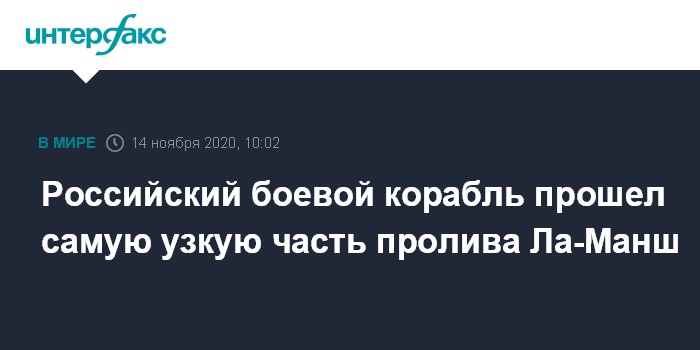 Москва. 14 ноября. INTERFAX.RU - Большой противолодочный корабль Северного флота России "Вице-адмирал Кулаков" в субботу утром прошел самую узкую часть пролива Ла-Манш (пролив между Британией и Францией) - Па-де-Кале по пути в Северное море, сообщила пресс-служба флота.