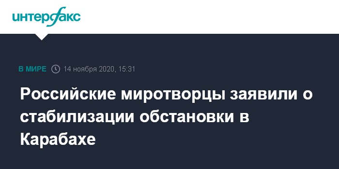 Москва. 14 ноября. INTERFAX.RU - Ситуация в Нагорном Карабахе стабилизируется, заявил в субботу командующий российским миротворческим контингентом генерал-лейтенант Рустам Мурадов.