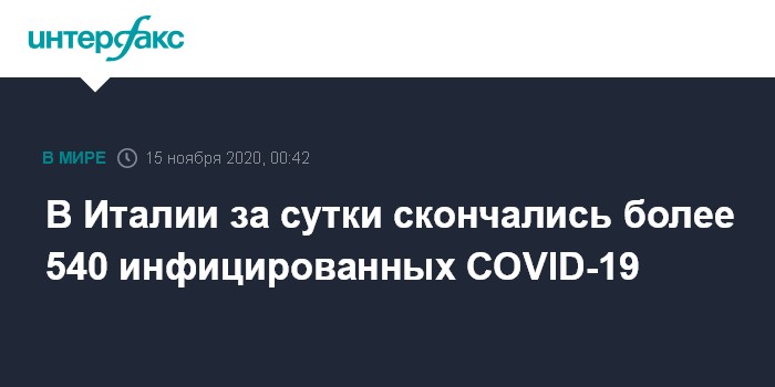 Москва. 15 ноября. INTERFAX.RU - В Италии за сутки зарегистрированы 544 летальных исходов среди лиц, инфицированных коронавирусом COVID-19, что немногим меньше, чем днем ранее с 550 смертями, сообщила в субботу газета The Guardian.