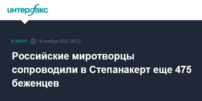 Минобороны России напомнило, что в субботу российские миротворцы сопроводили через Лачинский коридор первые девять автобусов с 250 беженцами, прибывшими в Степанакерт после развертывания миротворческого контингента и выставления наблюдательных постов.