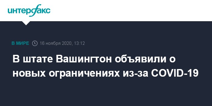 Москва. 16 ноября. INTERFAX.RU - Губернатор американского штата Вашингтон Джей Инсли сообщил о новых ограничительных мерах для борьбы с коронавирусом COVID-19 в регионе, которые вступят в силу с полуночи понедельника.