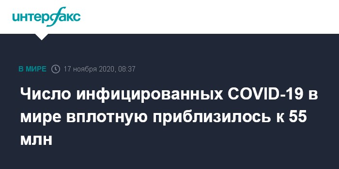 Число инфицированных COVID-19 в мире вплотную приблизилось к 55 млн