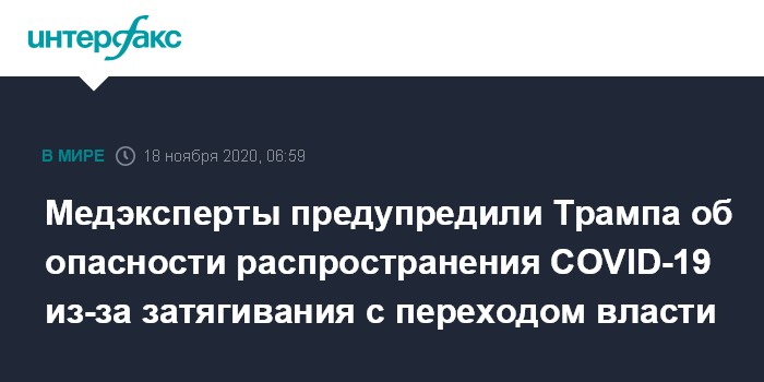 Медэксперты предупредили Трампа об опасности распространения COVID-19 из-за затягивания с переходом власти