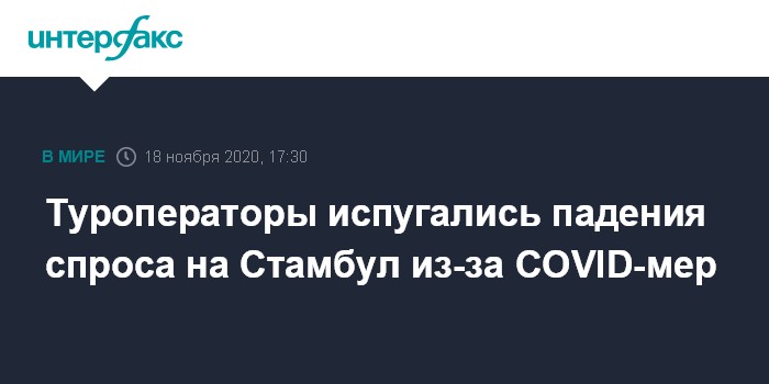 "Стамбул был, по сути, единственным доступным экскурсионным направлением и бронировался стабильно. Осенние продажи на регулярных рейсах превышали аналогичные периоды на 25%. Прогнозируем, что в связи с вводом ограничений, новые бронирования на ближайшие даты заездов могут затормозиться", - сказали в "Интуристе".