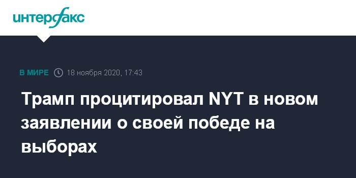 Трамп процитировал NYT в новом заявлении о своей победе на выборах