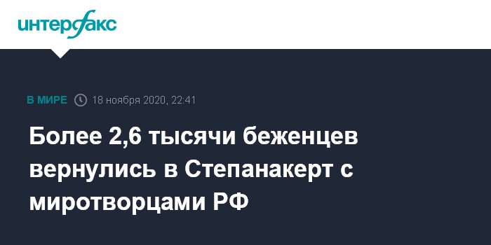 Более 2,6 тысячи беженцев вернулись в Степанакерт с миротворцами РФ
